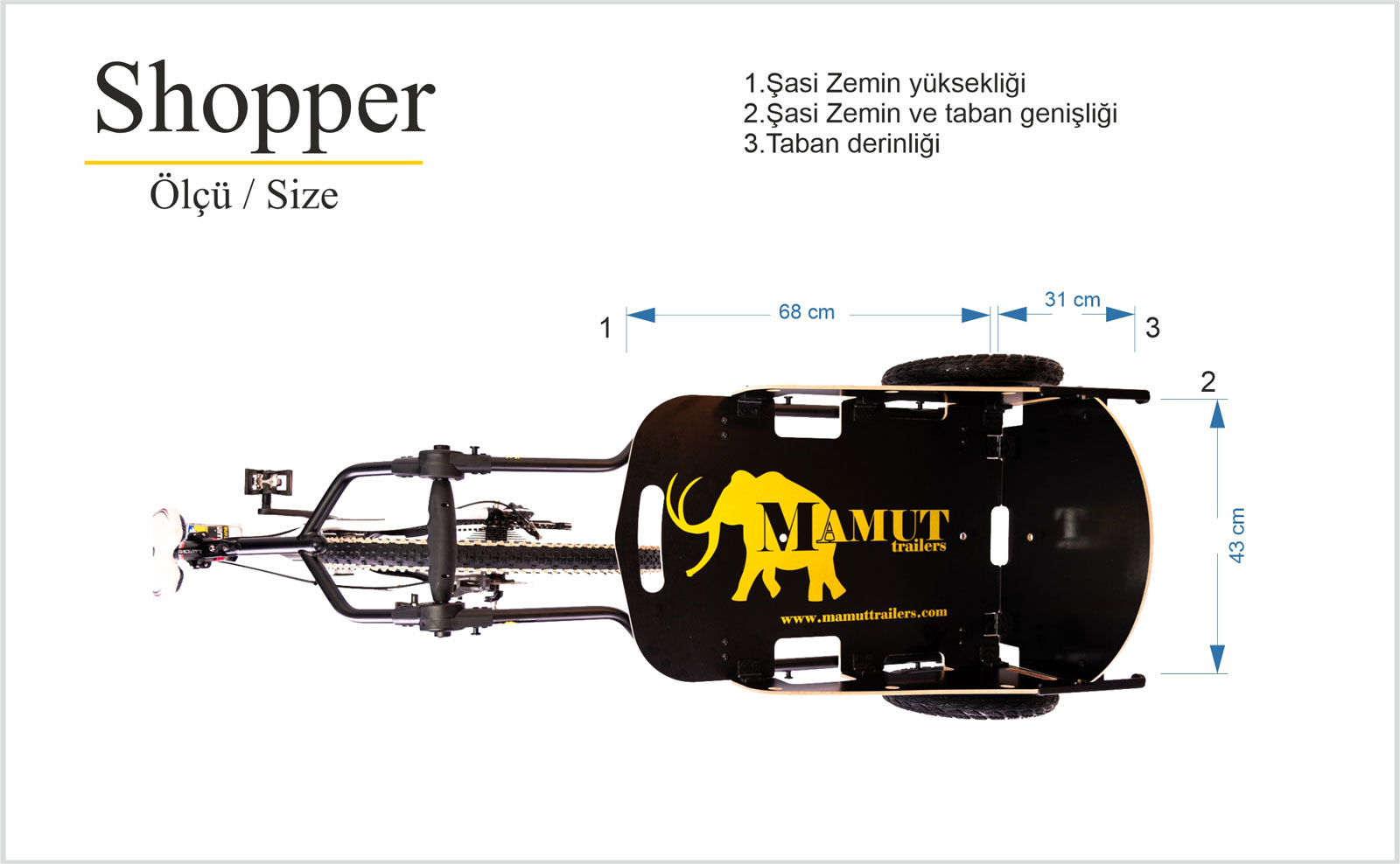 Mamut Trailers Shopper’ın kompakt tasarımı sayesinde, zahmetsizce katlanabilir ve günlük alışverişlerinizin vazgeçilmez bir parçası olup her daim kullanıma hazırdır. Bisikletiniz ile uyum içerisinde olan çabuk bağlantı, katlanabilir çekme kolu ve özenle tasarlanmış diğer özellikleri sayesinde, römorkun kullanışlılığını ve işlevselliğini en üst düzeye çıkarır. Shopper herhangi bir market alışverişinizde ya da semt pazarlarında yaptığınız yiyecek alışverişinizdeki tüm ihtiyaçlarınızı bisikletle güvenli bir şekilde taşımak için mükemmel bir araçtır. Yer kaplamaz ve oldukça kullanışlıdır.